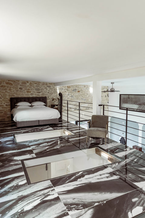 Les grandes baies vitrées inondent l’espace de lumière naturelle et offrent une vue imprenable sur la piscine du Domaine. Ce Loft, à la fois spacieux et singulier, allie le charme de l’histoire à des équipements modernes pour un séjour inoubliable.